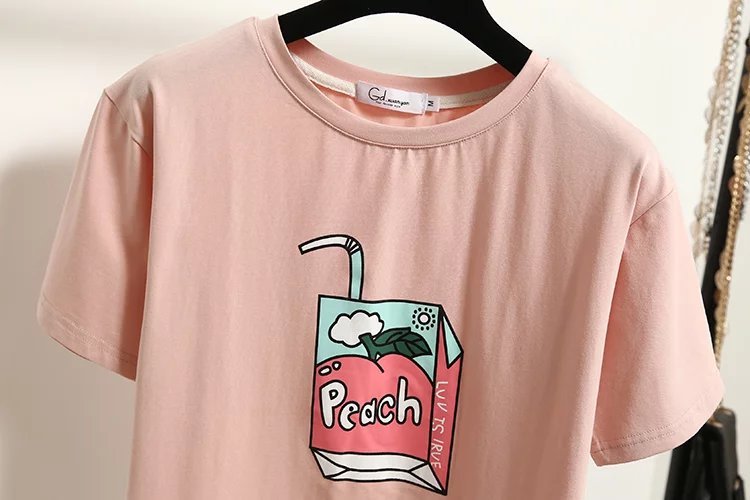 PS9750 圓領T恤女2017夏季韓版寬松飲料印花短袖學生打底上衣體恤